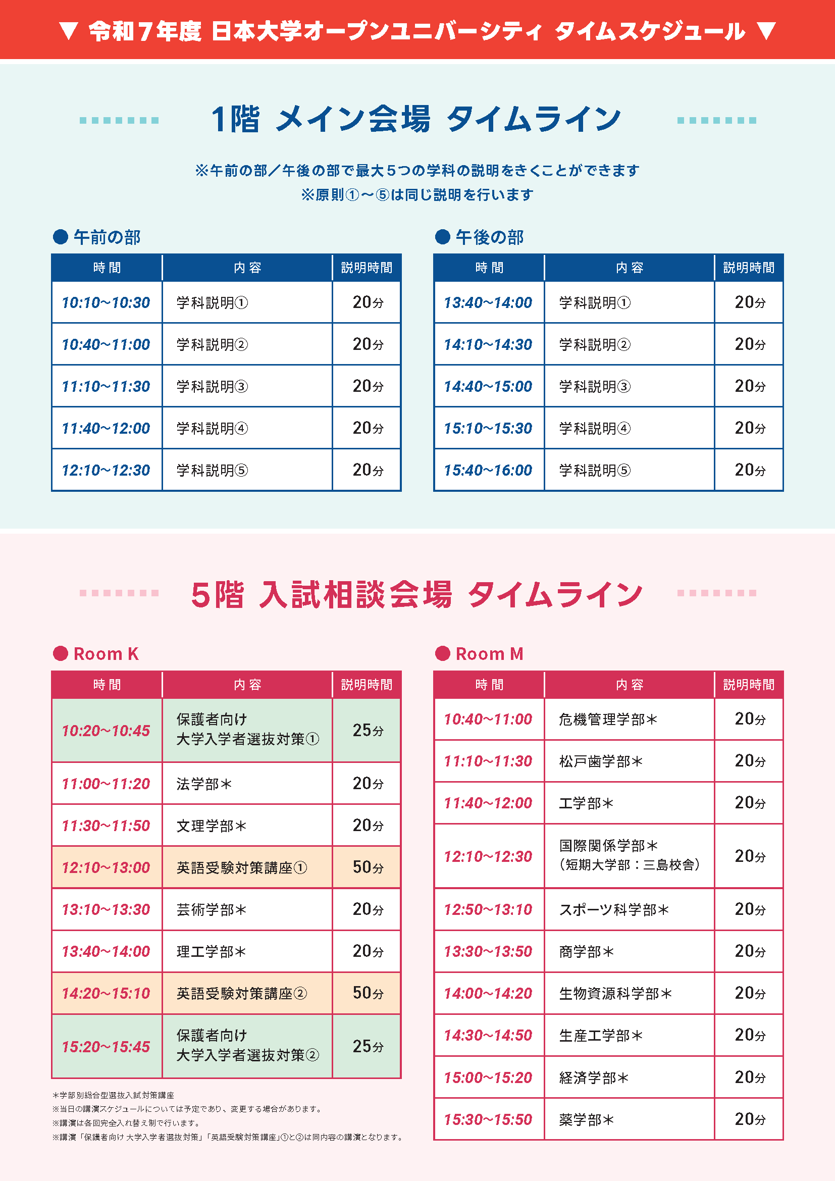 個別進学相談ブースで進学アドバイザーが質問にお答えする入試相談会や、「入試直前!英語受験対策講座」「学部別総合型選抜入試対策講座」など、各種講座も開催予定です。ぜひお越しください。